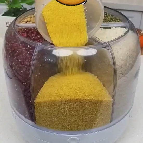 Rotating Rice and Grain Dispenser - Space-Saving, Easy to Use, Transparent 6-Grid Food Storage Container